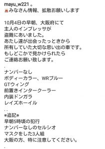 9. 皆様のご協力で犯人逮捕となりました(大阪府 スカイラインGT-R BN…