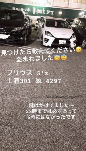 茨城県 H26 トヨタG’sプリウス 盗難