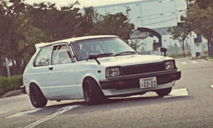 大阪府柏原市 KP61スターレット3ドア白ワタナベホイール 盗難