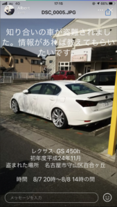 愛知県守山区 H24式 GS450h 盗難されました。